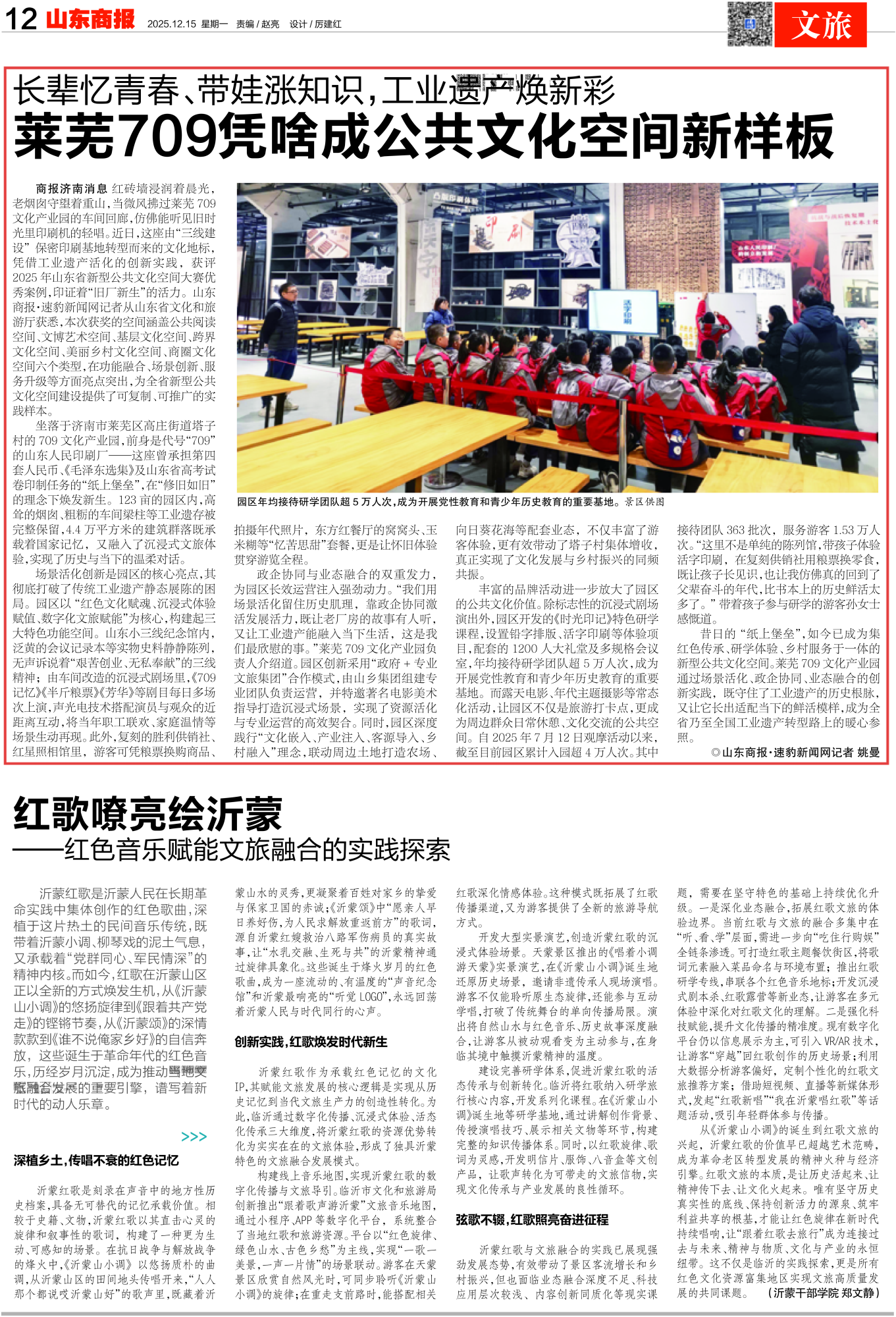 昔日的“紙上堡壘”,如今已成為集紅色傳承、研學體驗、鄉村服務于一體的新型公共文化空間。萊蕪709文化產業園通過場景活化、政企協同、業態融合的創新實踐,既守住了工業遺產的歷史根脈,又讓它長出適配當下的鮮活模樣,成為全省乃至全國工業遺產轉型路上的暖心參照。