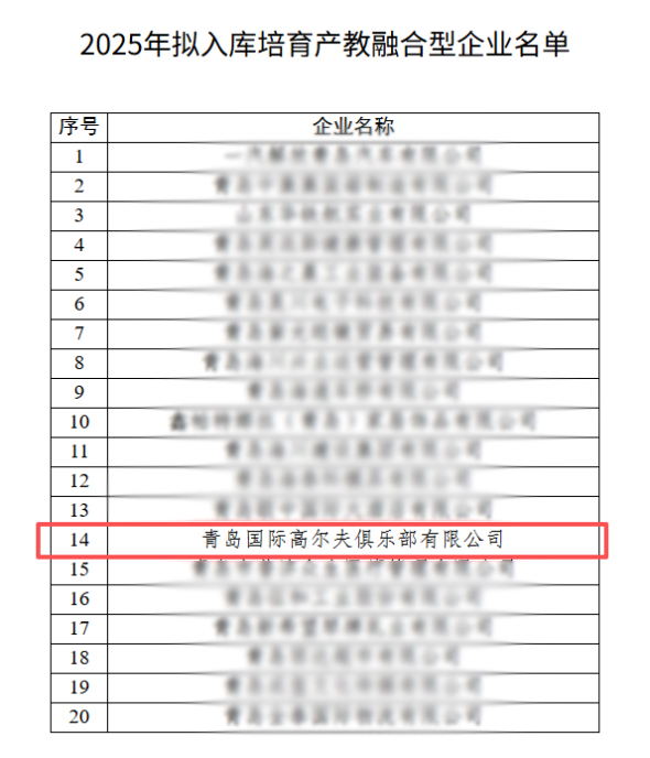 近日,青島市發展和改革委員會發布青島市2025年入庫培育產教融合型企業名單,青島高爾夫公司憑借產教融合、校企合作等方面的突出表現,成功入選青島市產教融合企業培育庫。